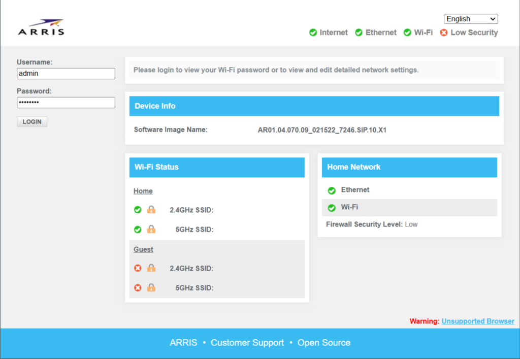 - Log in to the modem’s interface using your credentials or the default login details provided below: