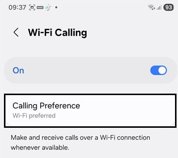 - Change “Calling Preference” to Wi-Fi preferred