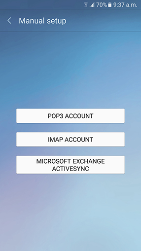 - A screen will be displayed to select the account type, POP3 Account must always be selected.