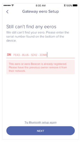 Any previous configurations can be cleared by performing a hard reset. Follow the below steps to perform a hard reset on eero:
