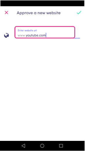 - Enter the URL and tap the check mark to save. Please note that full domain name is required. For example: make sure to write youtube.com instead of youtube