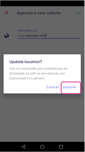 Please remember that a website allowed for a person will automatically be allowed on all the devices assigned to that person.