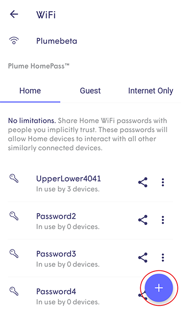 - In the WiFi tab you will see PlumeWiFi HomePass under your network name
