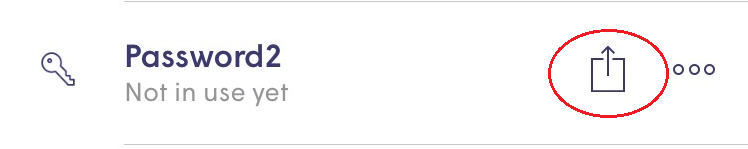 - Click on the share icon next to the password to send by email, SMS or airdrop