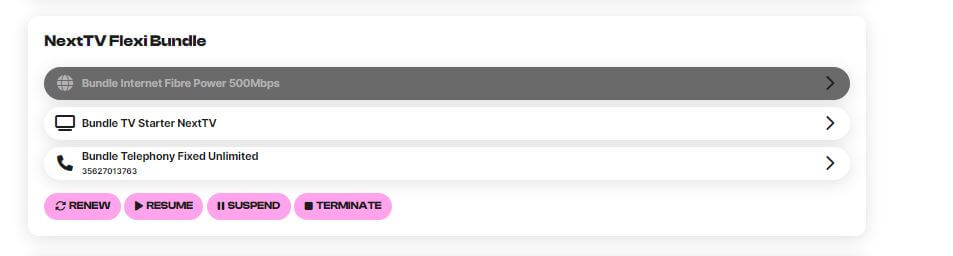 • Click on the  arrow next to your Internet subscription