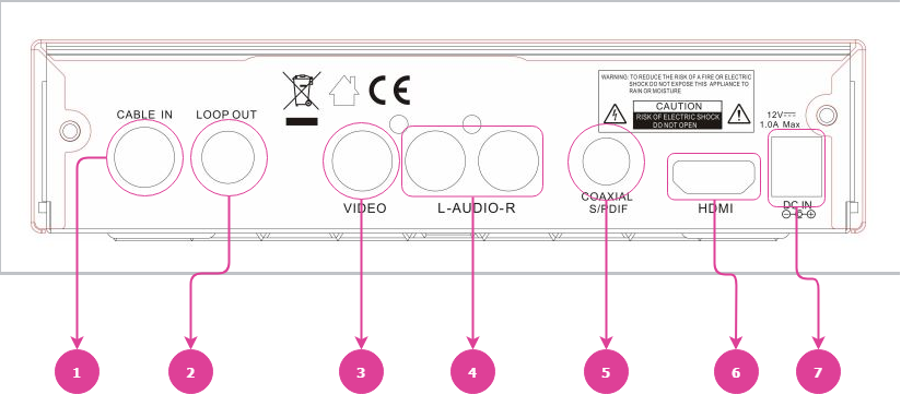 - Connect the Coaxial cable to the connector labelled CABLE IN (1)