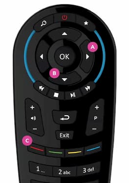 - Red shortcut to see programme guide (C)