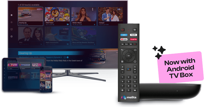 Enjoy Melita TV on up to 4 devices at the same time, TV, laptop, smartphone, tablet. Catch-up, pause, rewind, record. Your devices, your choices.